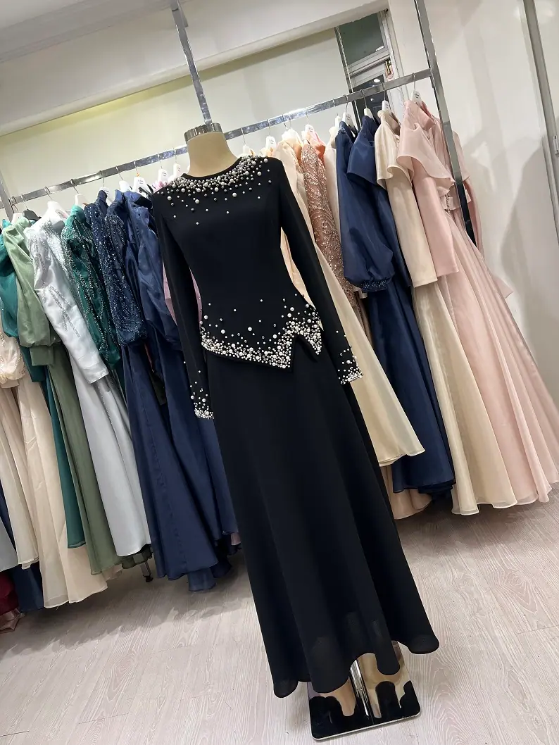 • Ürün Adı: Siyah inci Taş işlemeli Duble Krep ikili Abiye Takım